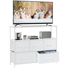 Large Open Storage: This dresser offers open storage with unobstructed views, making it easy to access your frequently used items. The wooden top supports a TV (up to 45") or other essentials.