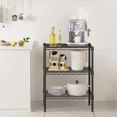 Adjustable Height: The wire shelf organizer adopts an adjustable design, allowing you to customize the height of each layer according to your storage needs, providing flexibility to accommodate different items and ensuring a clean and orderly space