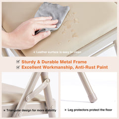 Comfortable Experience: This folding chair features a high-density sponge-padded backrest and seat cushion, offering exceptional comfort. The premium PU leather ensures a soft, durable, and easy-to-maintain surface for an impressive seating experience.