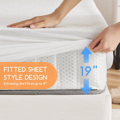 360° Wrap-Around Mattress Pad Cover: Available in multiple sizes (Twin, Full, King, Queen), this mattress protector features a strong elastic skirt that wraps around your mattress, keeping it securely in place. It accommodates mattress thicknesses from 8"- 21", ensuring a snug fit for assorted sizes.