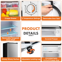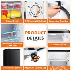 Spacious Interior: Despite its compact size, the small fridge boasts a spacious 3.2 cuft interior with 1 crisper drawer, 2 adjustable shelves, and door compartments. This smart design allows you to maximize storage space and organize your items efficiently, making it easy to find what you need when you need it.