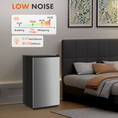 Quiet Operation: The low-noise fridge operates at 38dB. Enjoy a peaceful environment with the mini fridge's whisper-quiet operation, making it ideal for use in bedrooms, study areas, or any quiet setting where you need a silent appliance.