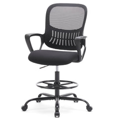 Drafting Chair with Adjustable Footrest: This desk chair features a height-adjustable footrest ring, perfect for drafting or standing desks. The seat height adjusts from 23" to 28.9" to suit various needs, and the armrests provide added comfort for relaxation.