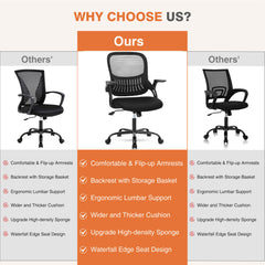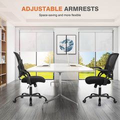 Space-saving: The flip-up armrests provide support for your arms and can be easily flipped up to save space when not in use, making it a practical solution for any workspace.