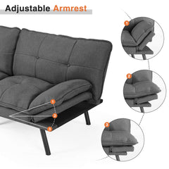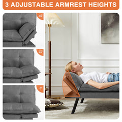 Multifunctional Futon Sofa Bed: Tailor your comfort with adjustable backrest (100°-180°) and armrest (135°-180°) angles. This sofa bed offers personalized relaxation for lounging or sleeping.