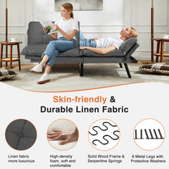 Sturdy Convertible Sofa Bed: Featuring a solid wood frame and metal legs, this futon sofa bed supports up to 600 lbs. The metal legs reinforce stability and prevent wobbling, ensuring long-lasting durability.
