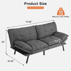 Ideal for Compact Spaces: Perfect for studios, apartments, dorm rooms, or offices. As a sofa, it measures 71"L x 33"W x 31.5"H, and as a bed, it extends to 71"L x 42"W x 16"H.